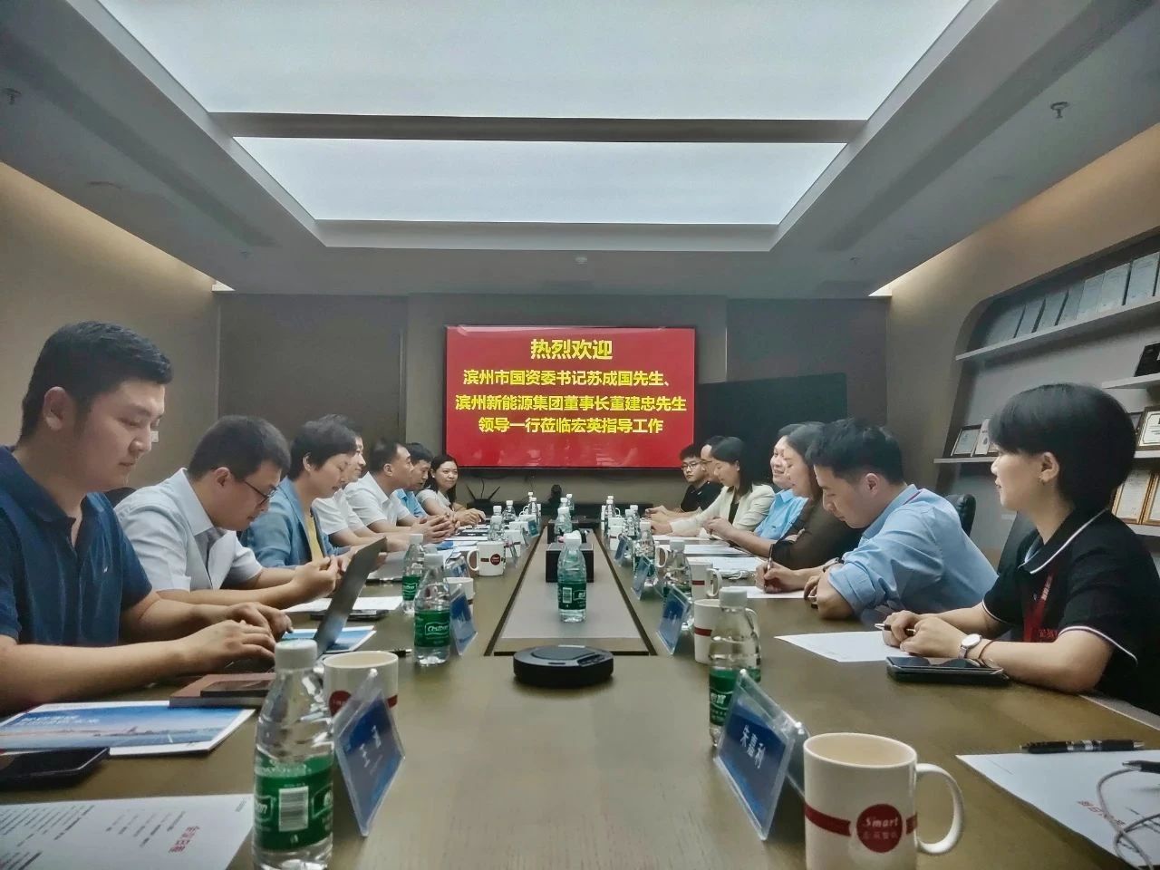 9月2日,滨州市国资委党委书记苏成国一行莅临mk体育考察,mk体育董事长张化宏热情接待,并就双方在储能项目上的合作进行了深入交流。滨州新能源集团党委书记、董事长董建忠,党委副书记、副董事长、总经理巩萍也一同参与了此次考察。