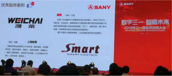 2019年三一重起供应商大会于10月10日在长沙隆重举行。mk体育凭借10多年来优质的贴心服务、专业的技术团队支持三一起重机控制技术向智能化、数字化深入发展。