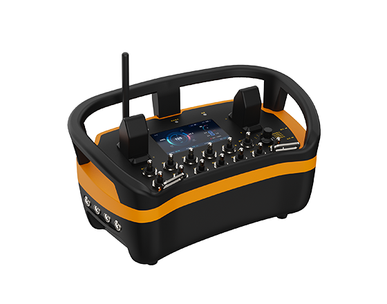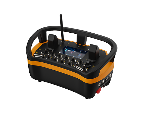 发射器配备4.3英寸液晶显示屏,操作直观便利; 独立安装的接收器,外壳密封,线束简洁,无需依赖复杂的电控柜; 可充电电池,标配串行电缆,在无线通讯不佳或电池电量低时的备选方案,确保持续运行; 腰胯式设计,保证操作者即便长时间作业也能保持舒适