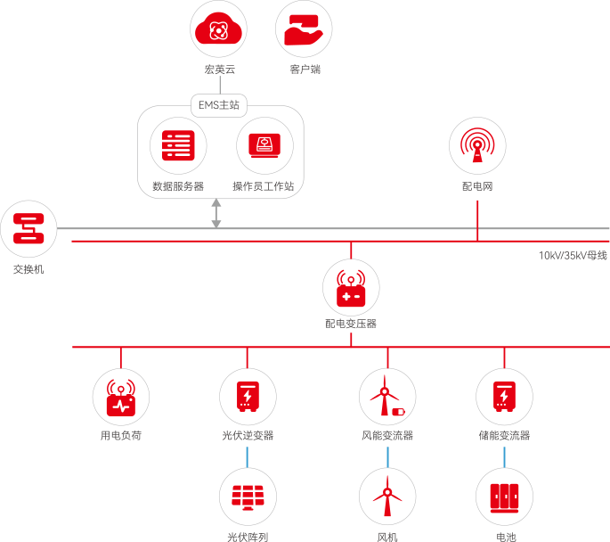 mk体育风光储一体化解决方案是融合物联网技术,将风能、太阳能、储能以及EMS能源管理系统结合起来,实现风、光、储多能互补协同运行,能源精准调配减少弃风弃光,提高能源综合效率,同时通过调峰、调频和调相等功能,有效抑制电网波动,提升电网稳定性、可靠性。