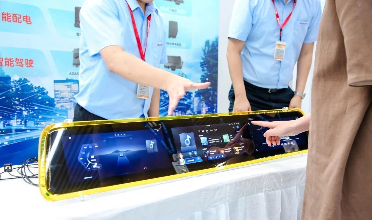 本次展出的三联屏是一款高端车载显示解决方案,搭载芯驰X9系列soc的智能联屏,可实现智能感知、智能交互等功能,同时该系统采用了最新的液晶显示技术,具有高亮度、高对比度和宽视角等特点,在任何光线条件下都能为驾驶员提供清晰的视觉体验,提升整车智能化感受。